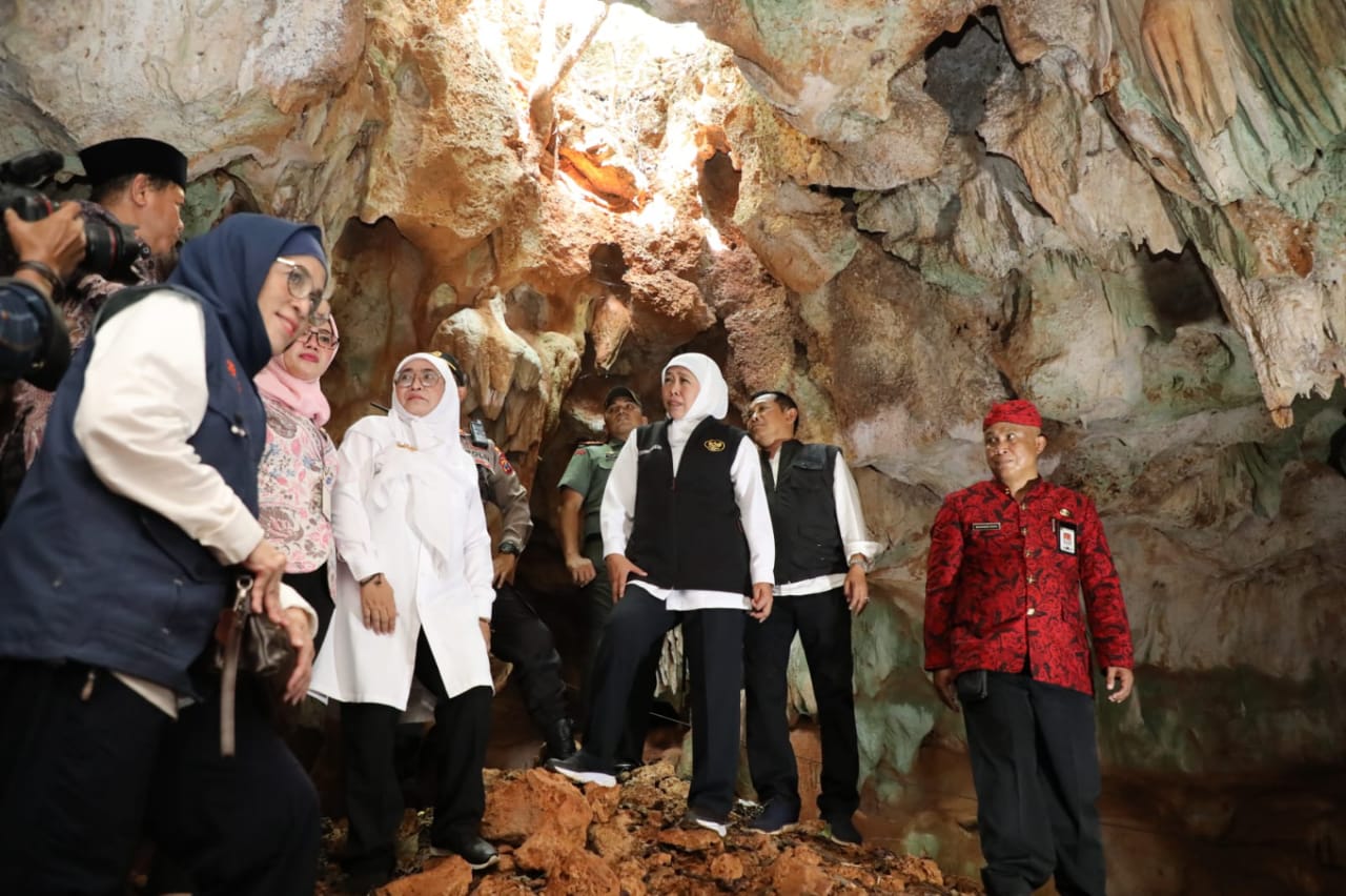 Sementara itu, dalam kunjungannya ke Gili Iyang Sumenep, Senen (4/7) Khofifah yang didampingi Wakil Bupati Sumenep Dewi Khalifah mengunjungi Goa Mahakarya di Dusun Ra’as Timur Desa Banraas. Gua alami hasil karya semesta ini menghadirkan pesona bebatuan stalaktit dan stalagmit yang unik dan indah.