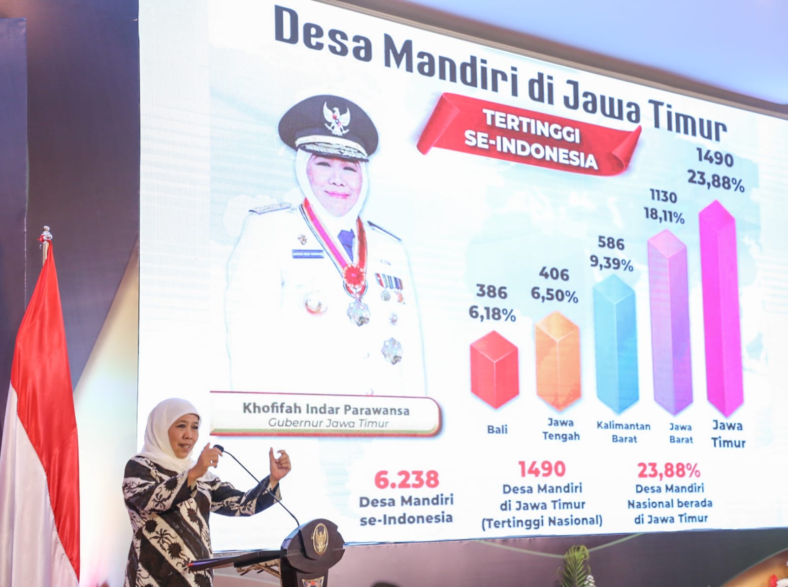 Menurut Khofifah, kepala desa adalah aktor penting dalam pengembangan desa. Karena peran merekalah, saat ini Jatim menjadi provinsi dengan jumlah desa mandiri terbanyak di Indonesia berjumlah 1.490 desa.