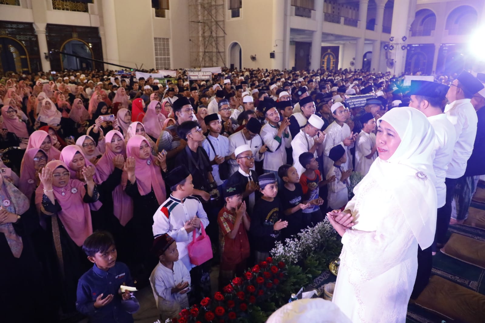 KOTA SURABAYA, KOREK.ID – (31 DESEMBER 2023) Gubernur Jawa Timur Khofifah Indar Parawansa menghadiri Refleksi Akhir Tahun 2023 dan Doa Awal Tahun 2024 untuk Kemaslahatan Jawa Timur dan Indonesia di Masjid Al-Akbar Surabaya, Sabtu (30/12) malam.