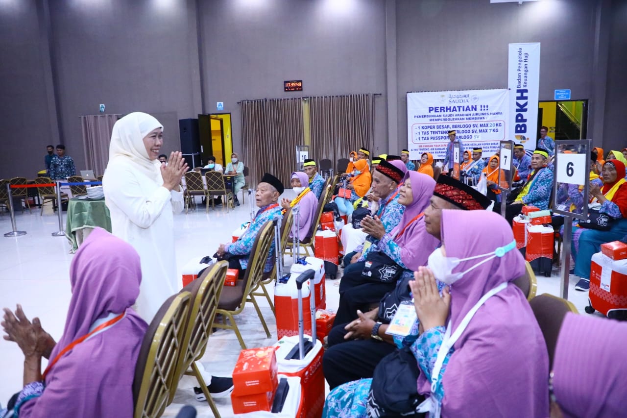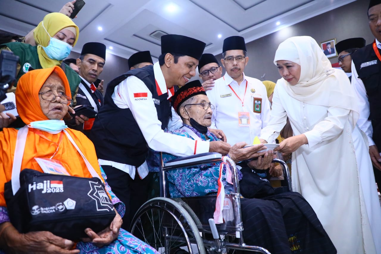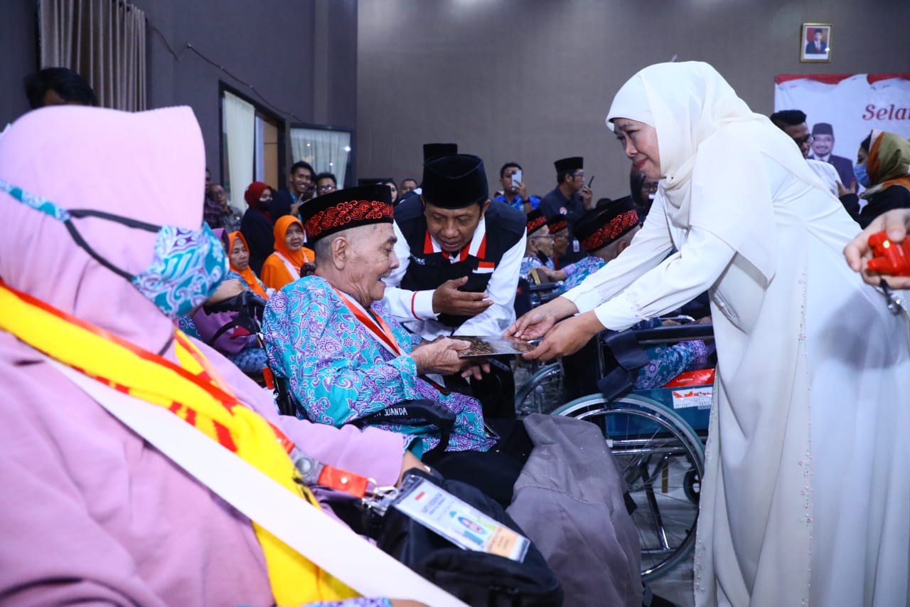 Peringati Hari Lanjut Usia, Gubernur Khofifah Beri Kejutan Spesial Jemaah Haji Lansia Embarkasi Surabaya