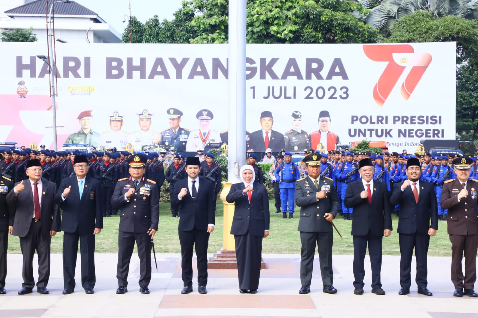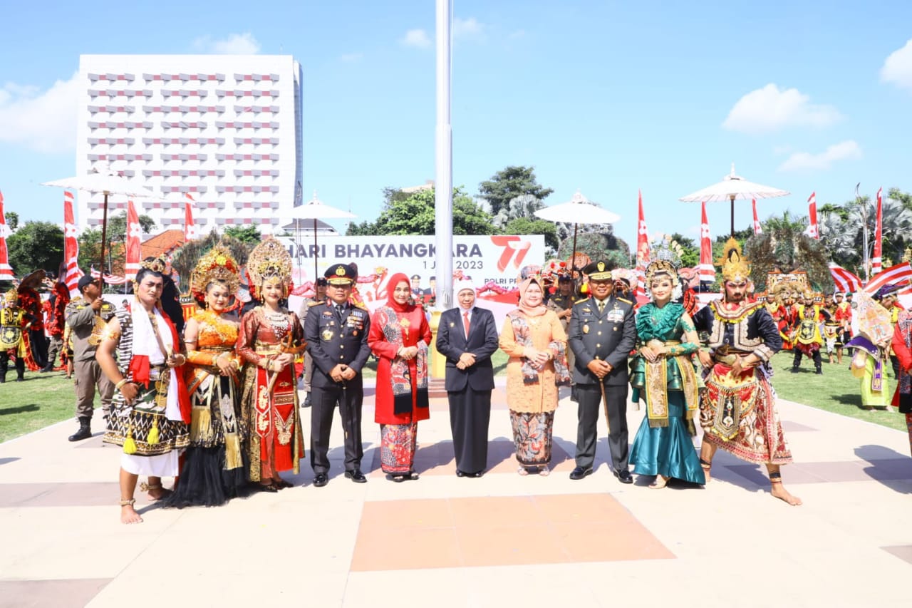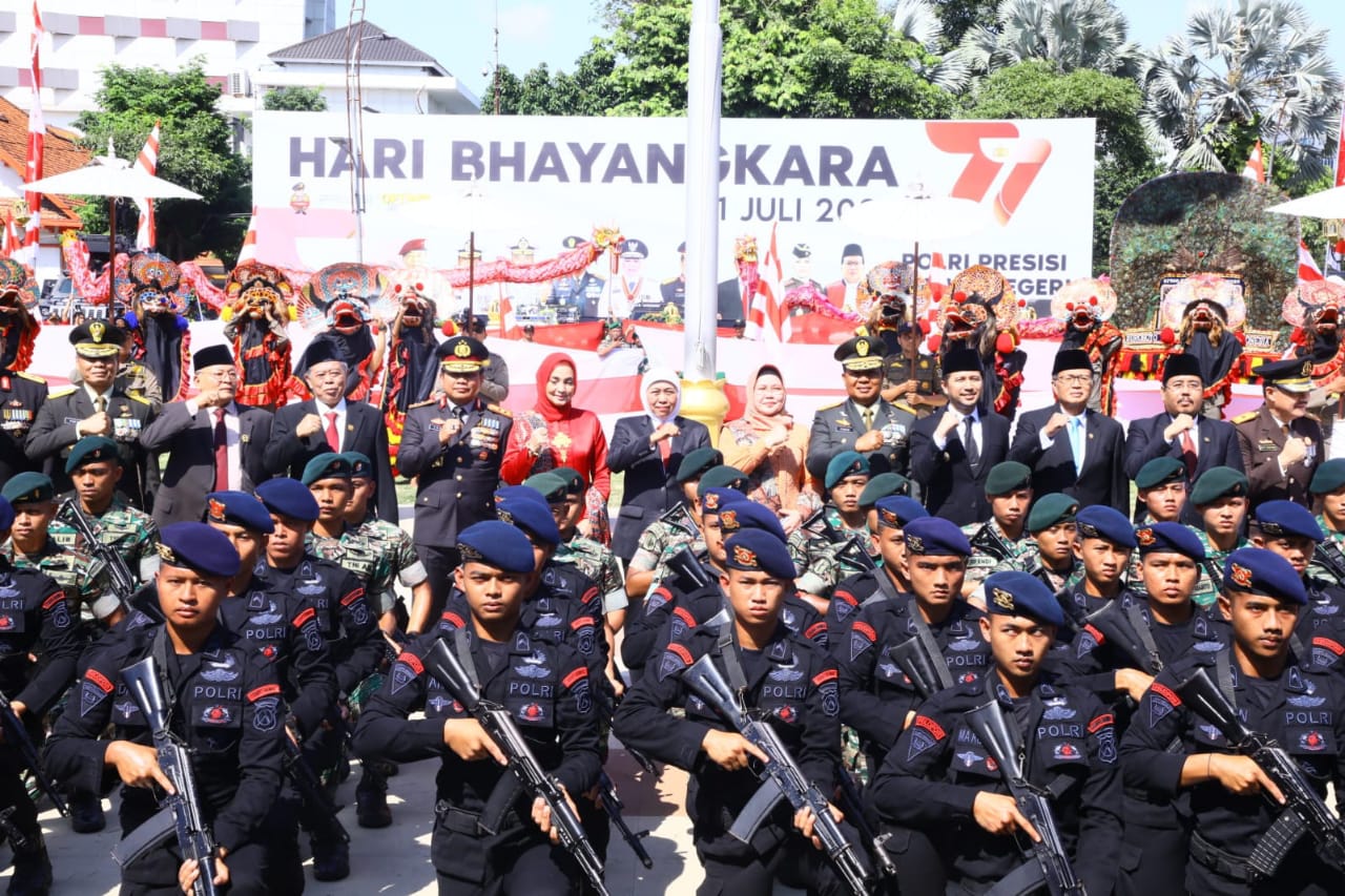 “POLRI adalah garda terdepan dalam menjaga kondisi Pemilu 2024 berjalan kondusif dan damai. Karenanya, kita semua berharap POLRI terus berkolaborasi dengan seluruh stakeholder untuk menjaga kohesifitas suasana dari berbagai potensi ancaman dan gangguan,” ujar Khofifah usai mengikuti upacara Peringatan Hari Bhayangkara ke-77 di Gedung Negara Grahadi, Sabtu (1/7/23).