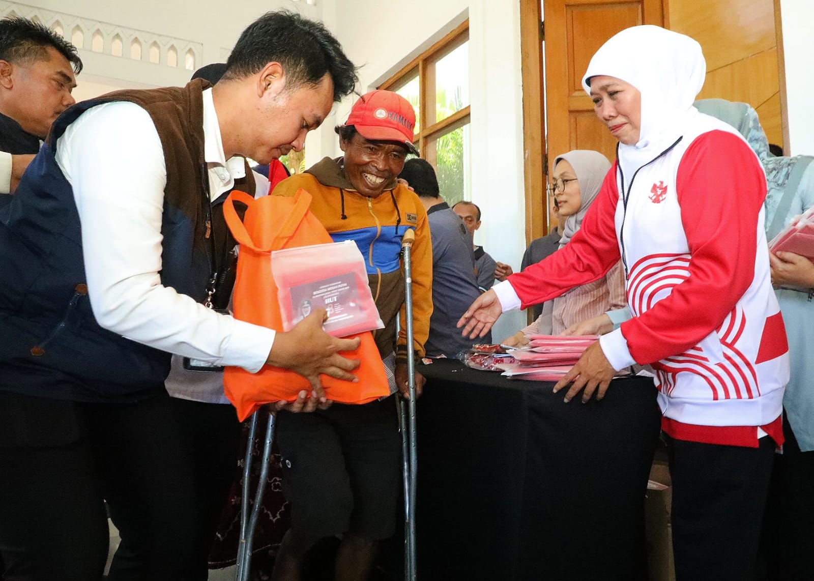 Pembagian tahap pertama sebanyak 1000 bendera dan sembako, dilakukan langsung oleh Gubernur Khofifah usai memberangkatkan TKSK dan Tagana yang menyalurkan tali asih bagi Perintis Kemerdekaan, Janda Perintis Kemerdekaan, dan Ahli Waris Pahlawan Nasional di halaman Kantor Gubernur Jatim, Jl. Pahlawan No. 110 Surabaya, Minggu (13/8).