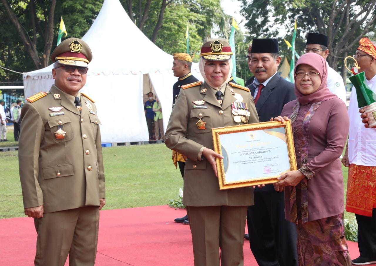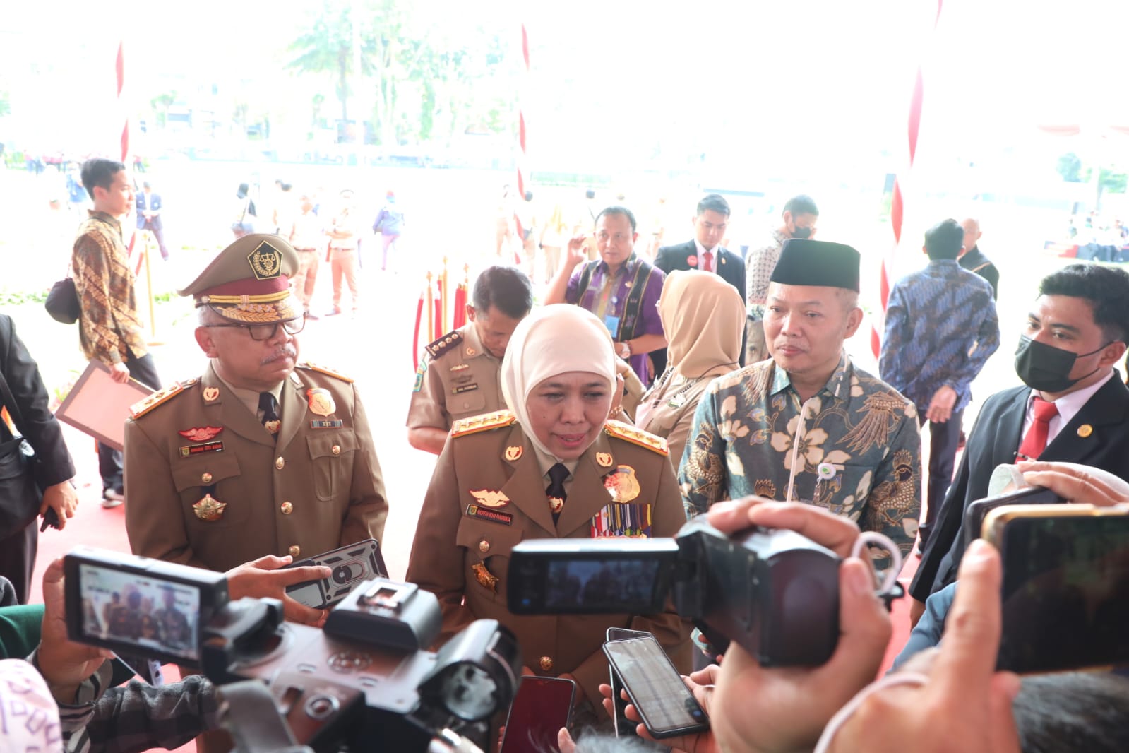 Pesan itu disampaikan Gubernur Khofifah saat menjadi inspektur upacara dalam peringatan bulan Keselamatan dan Kesehatan Kerja (K3) Nasional Tahun 2023 di lapangan bola Prapat Kurung Jalan Perak Timur, Kamis, (12/1/23).