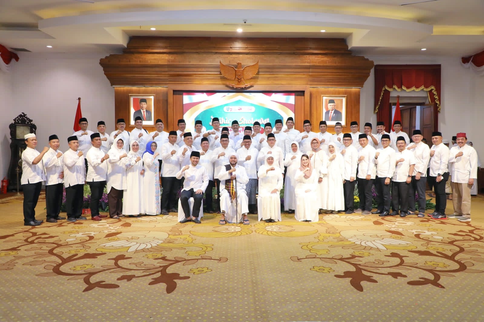Tak hanya Gubernur Khofifah, Wagub Jatim Emil Elestianto Dardak, Forkopimda Jatim, Sekdaprov Jatim, beberapa Bupati/Walikota, Ketua TP PKK Jatim, Kepala OPD dan BUMD Pemprov Jatim, tampak khusyuk bersama jamaah yang biasa disebut Syekhermania dari berbagai daerah di Jatim mengikuti seluruh rangkaian dzikir dan sholawat.