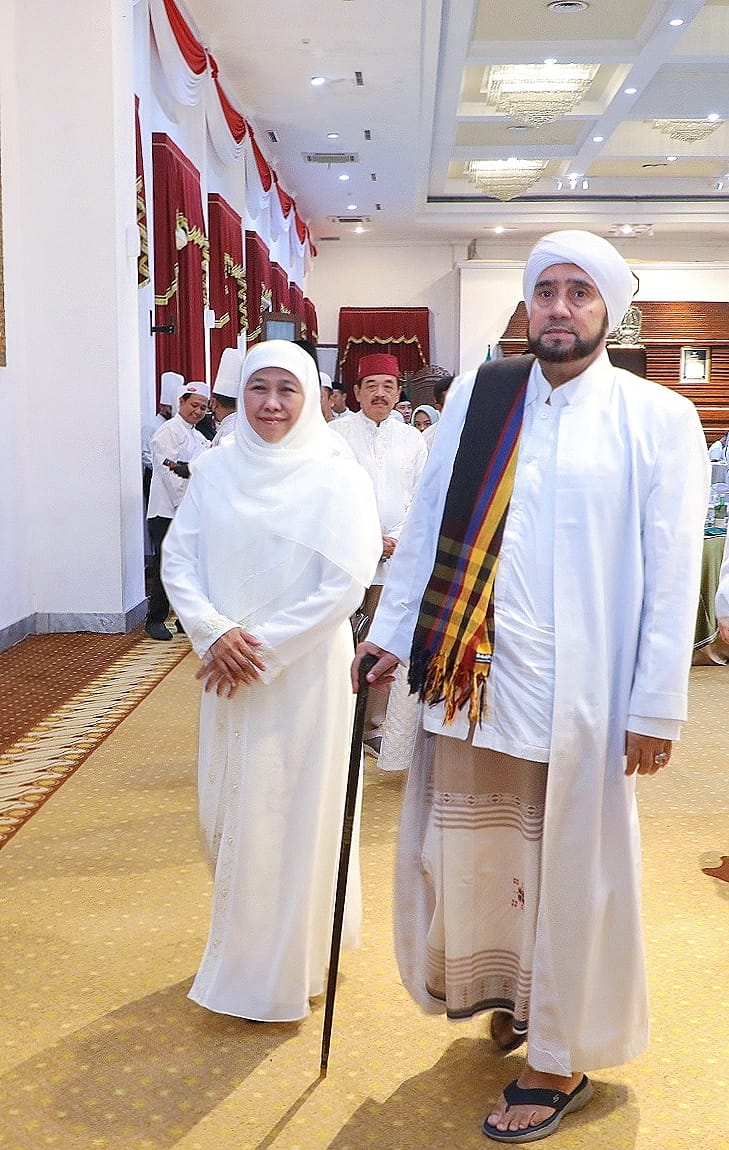 “Terima kasih Ibu Gubernur, alhamdulillah kami bisa bersholawat bersama Habib Syech. Semoga segala doa baik beliau membawa kebaikan bagi saya dan kita semua yang hadir utamanya warga Jawa Timur. Dan, semoga acara ini bisa rutin diagendakan,” ungkapnya.