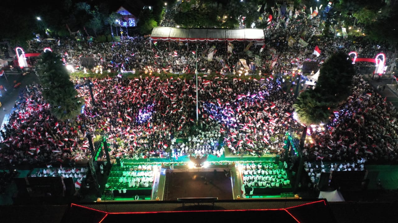 SURABAYA, KOREK.ID – (14 AGUSTUS 2023) Puluhan Ribu masyarakat bersama Gubernur Jawa Timur Khofifah Indar Parawansa mengikuti Dzikir dan Sholawat mensyukuri 78 Tahun Indonesia merdeka oleh Habib Syech bin Abdul Qodir Assegaf (Habib Syech) di Halaman Gedung Negara Grahadi Surabaya, Minggu (13/8) malam.