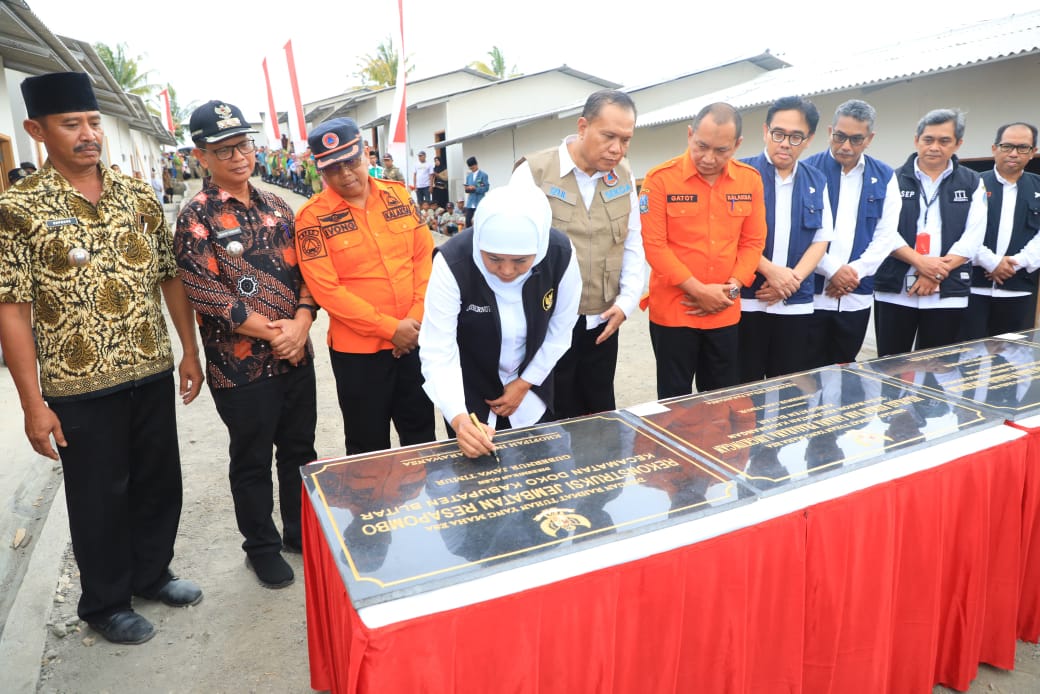 Peresmian ditandai dengan penandatanganan empat prasasti. Masing-masing tiga lokasi huntara dan satu Jembatan Resapombo oleh Gubernur Khofifah didampingi Sekda Kabupaten Blitar Izul Marom dan Kalaksa BPBD Provinsi Jatim Gatot Soebroto.