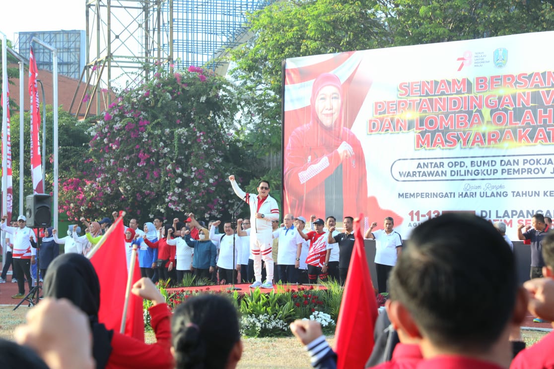 Adhy Karyono menjelaskan perlombaan yang dilaksanakan dalam rangkaian peringatan HUT ke 78 Kemerdekaan RI ini diharapkan bisa meleburkan sekat dan jarak diantara OPD di lingkungan Pemprov Jatim.