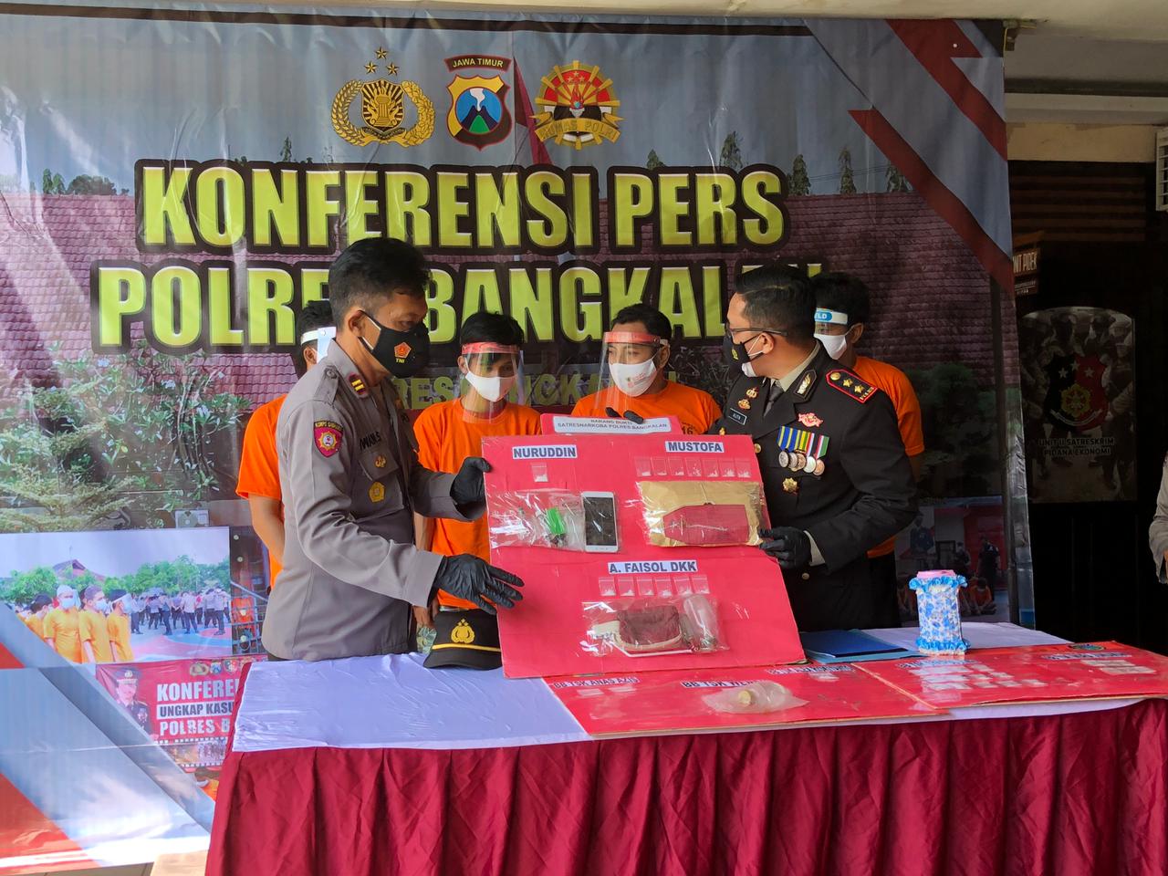 Kapolres Bangkalan AKBP Alith Alarino menerangkan, pihaknya mengungkap 8 kasus penyalahgunaan narkoba dengan jumlah tersangka 9 orang.