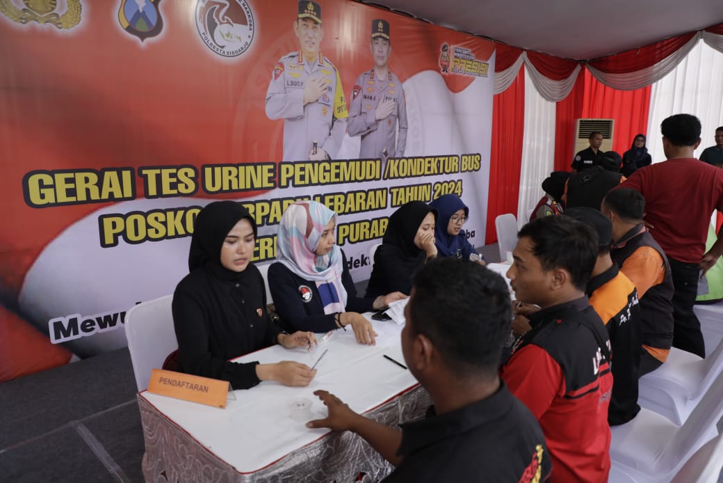 Selanjutnya, Pj. Gubernur Adhy bersama rombongan mengecek secara langsung pelaksanaan tes urine bagi para sopir yang akan melaksanakan perjalanan mengantar para pemudik. Dengan adanya tes urine ini akan lebih meminimalisir terjadinya kecelakaan yang disebabkan oleh human error