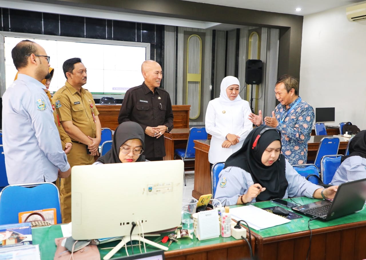 Tidak hanya menyapa langsung masyarakat yang mengantre, Gubernur Khofifah turut meninjau langsung proses pelayanan tersebut. Termasuk meninjau ruangan call center dan menyapa para petugas operator yang bertugas. Dimana, dalam ruangan call center ini juga tersedia dashboard informasi untuk memantau pergerakan data proses PPDB.